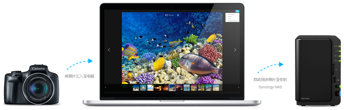 對(duì)于專業(yè)攝影師或擁有大量照片的人而言,一個(gè)可以存儲(chǔ)完整照片收藏的設(shè)備已不可或缺。Synology NAS 服務(wù)器讓你集中存儲(chǔ)照片,無論身在何處,都能輕易存取。此外,更可享受各種豐富的分享 app,為你提升生產(chǎn)力,F(xiàn)在就讓照片存儲(chǔ)變得更簡單!