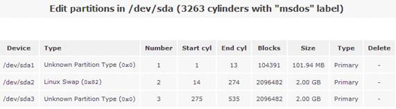 然后點擊磁盤“/dev/sda”,系統會顯示當前磁盤的詳細分區(qū)信息。如圖