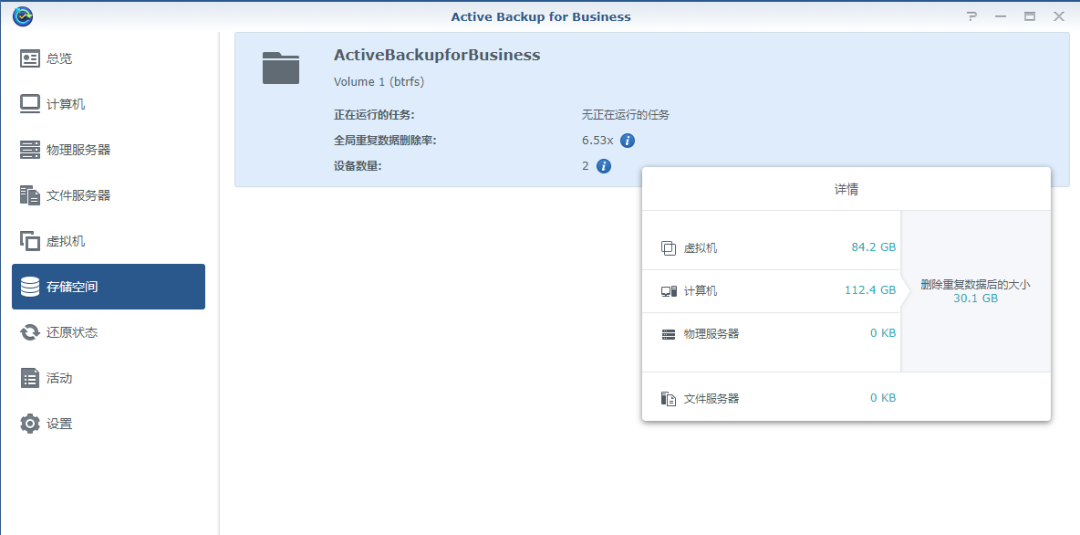 使用Active Backup for Business和Cloud Station Backup套件可以備份電腦數(shù)據(jù)。Active Backup for Business(ABB)提供PC系統(tǒng)整機備份,當(dāng)公司有許多電腦需要備份,IT 人員可以批量為員工電腦部署代理,并可以設(shè)置裸機、系統(tǒng)盤、自定義等不同的備份策略。ABB支持全局重復(fù)刪除技術(shù)以及增量備份,大幅節(jié)省備份空間。