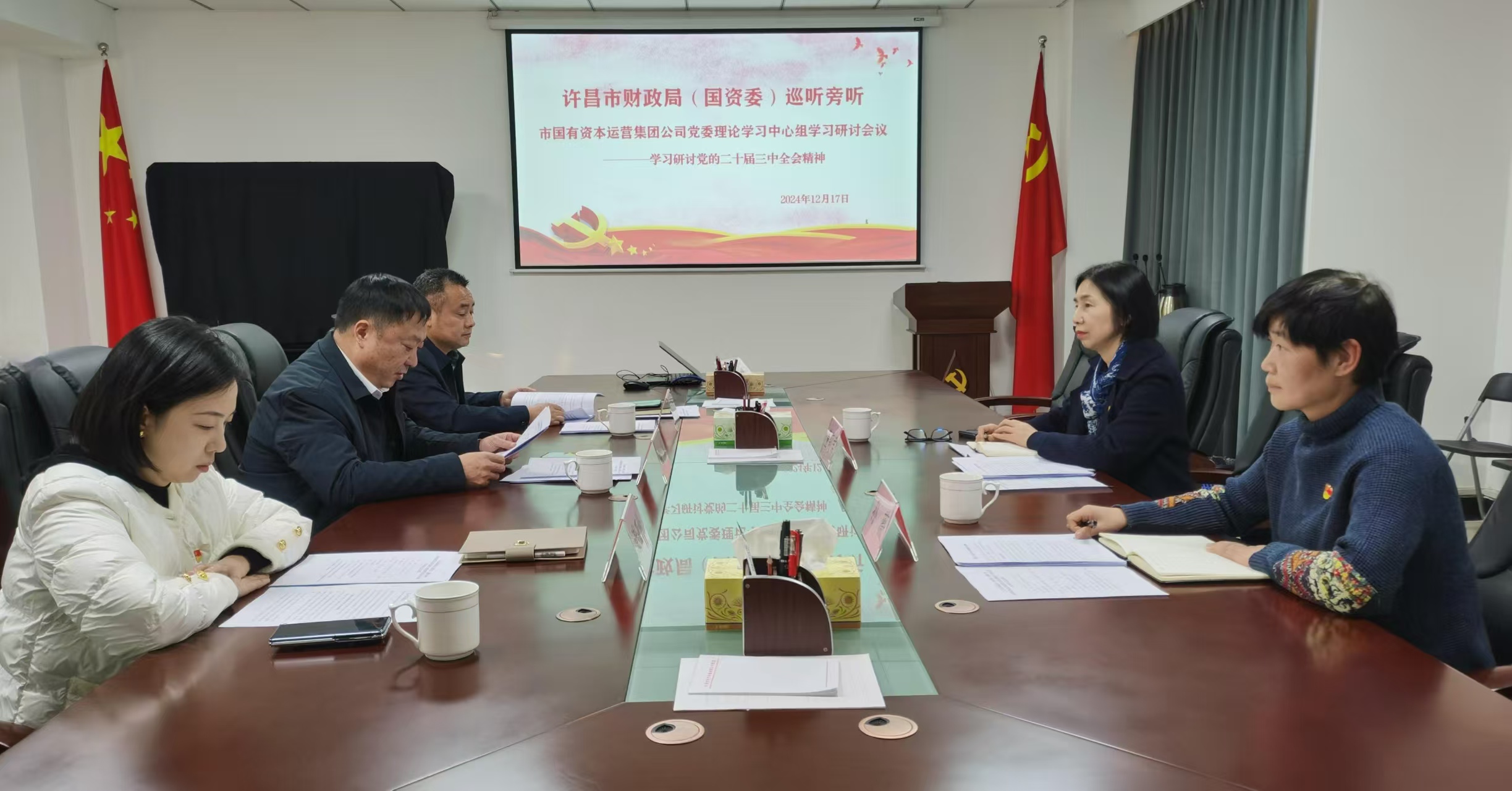 許昌市財政局(國資委)巡聽旁聽公司黨委理論學習中心組學習研討會